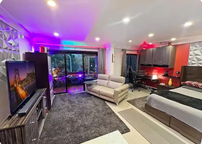 El Updated Gorgeous Studio Condo In West Hollywood With Pool Los Ángeles, situado a 5 minutos a pie de Coast Playhouse, seduce a sus huéspedes con un jacuzzi. El Melrose Place se encuentra a unos cuantos pasos del apartamento de 42 m², mientras que la Casa Schindler del MAK Center for Art and Architecture está a 350 metros.